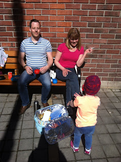 Farmor hade fixat ett jättegod lunch till oss som vi mumsade på i solen utanför Globen.
